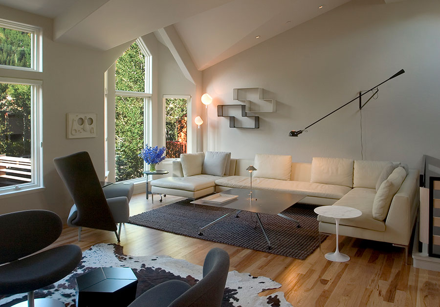Located at the base of Aspen Mountain, this existing townhouse was completely renovated with a design program to simplify the architectural details, lighten the space, and establish a strong but neutral backdrop for the client's art and design collection.